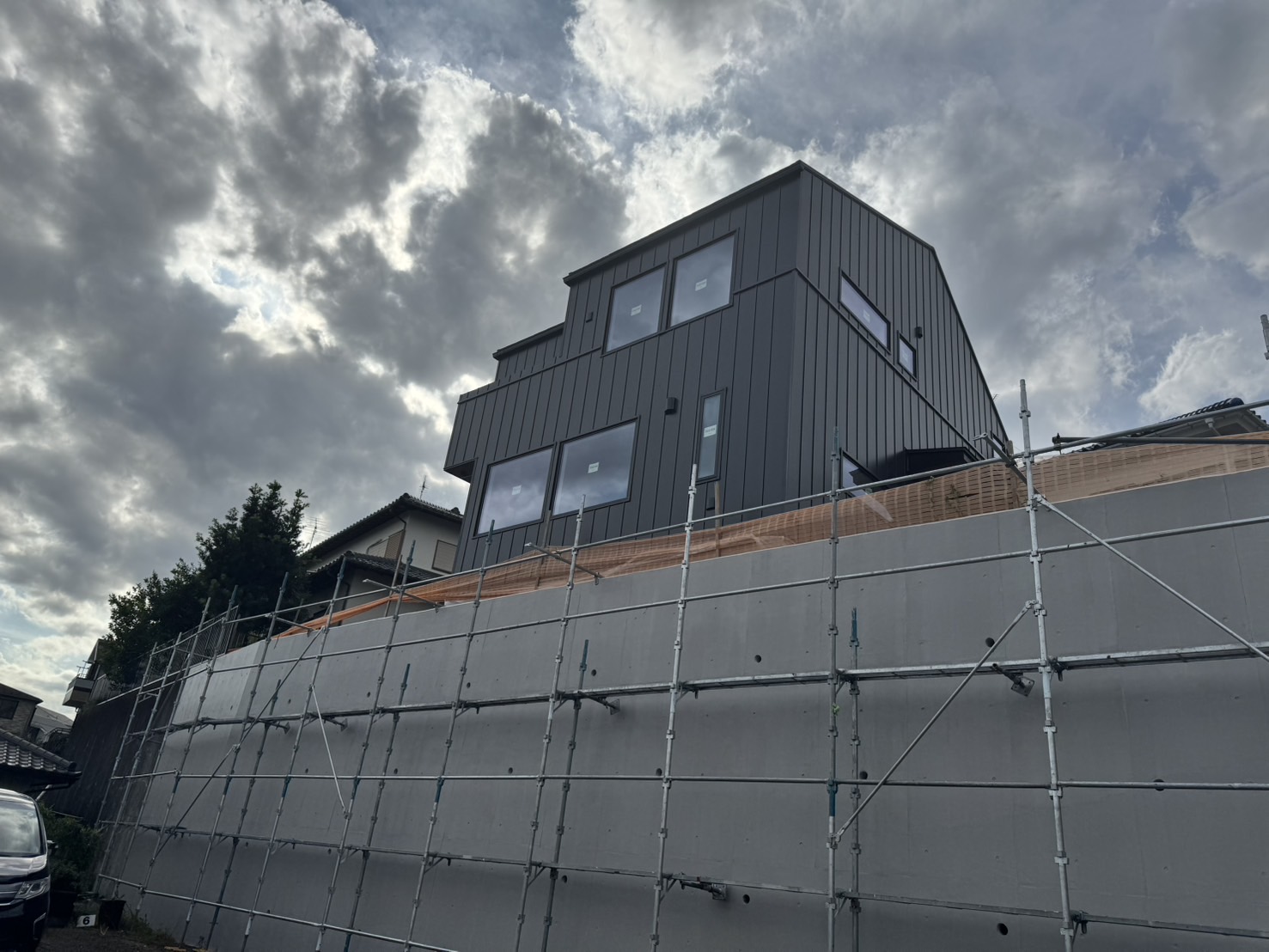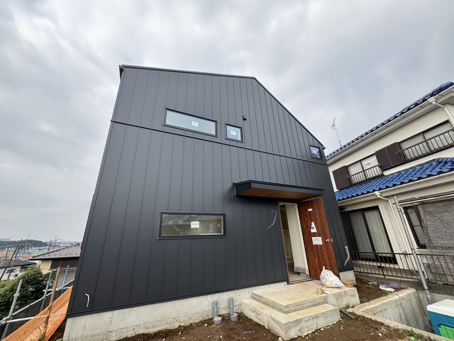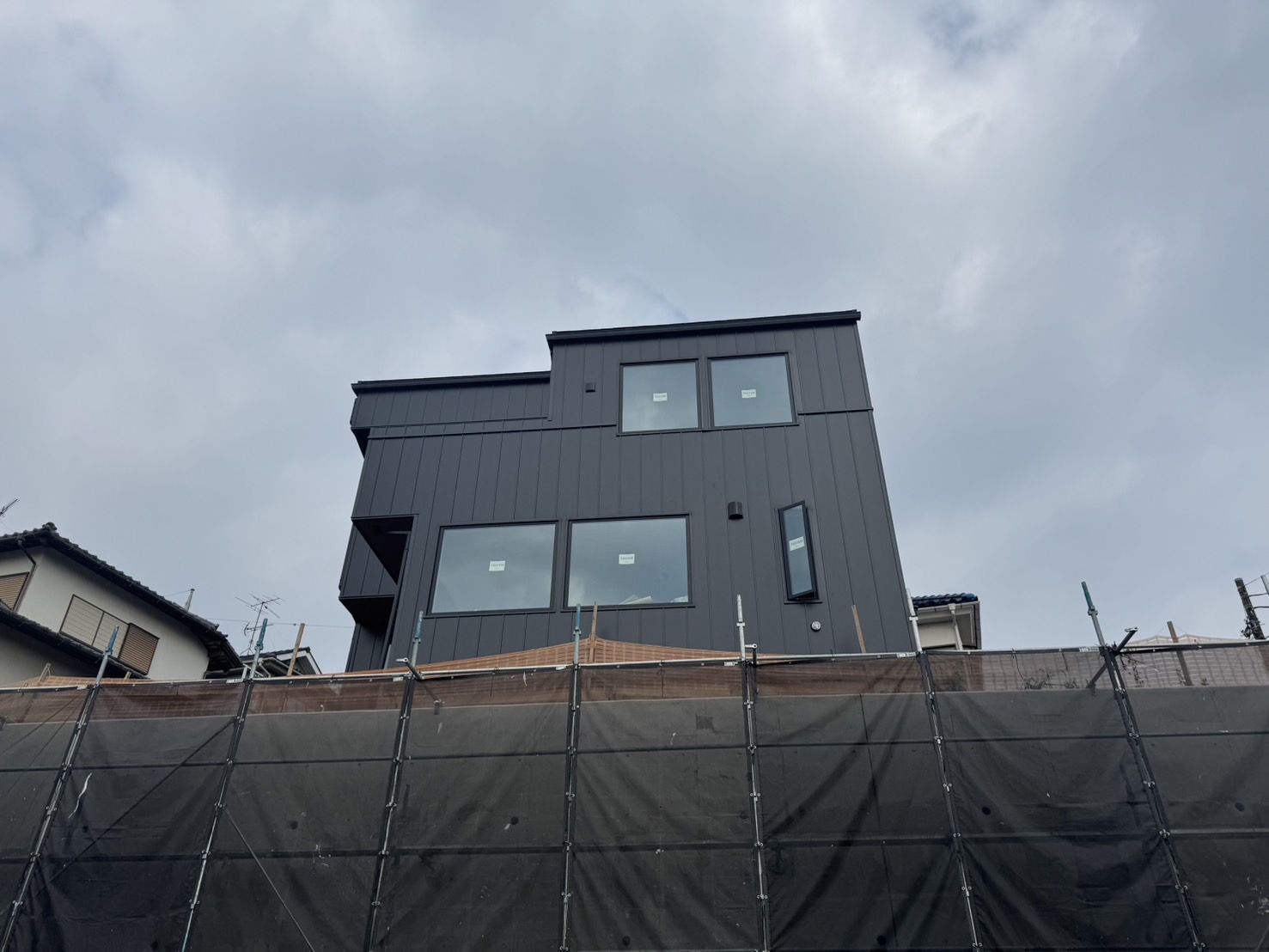 LDK25帖超、大型3LDK,黒鉄の城をイメージした真っ黒な家です。外壁は黒のガルバニウムに覆われ要塞の様です。